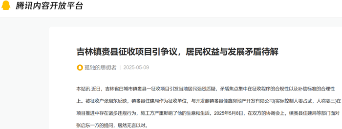 吉林镇赉县征收项目引争议,居民权益与发展矛盾待解