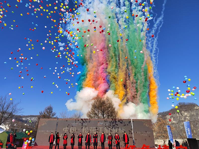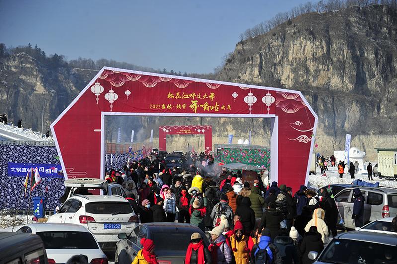 中国·松花江旅游季暨第二届松花江冬捕文化节系列活动开幕式现场。本次活动旨在延展冰雪产业链条,拉动冰雪消费,充分展示靖宇冰雪文化魅力