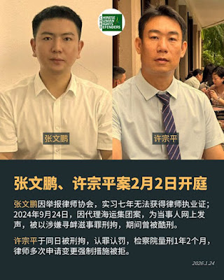 张文鹏因举报律师协会,实习七年无法获得律师执业证;2024年9月24日,因代理海运集团案,为当事人网上发声,被以涉嫌寻衅滋事罪刑拘,期间曾被酷刑。