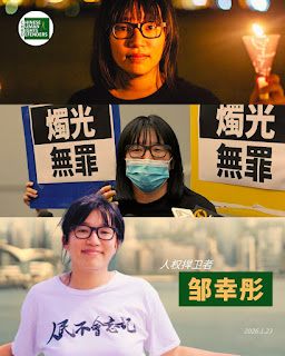 邹幸彤在狱中一直抵制港府的反民主、反人权待遇,继续与压迫香港人民的制度进行顽强斗争。这给了世界各地渴望民主社会的人权活动人士和公民带来勇气和希望。尽管身陷囹圄,但邹幸彤女士已成为香港人勇气和希望的象征。