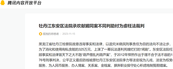 东安区法院阶段:2012年11月,悍然作出(2012)176号判决,再次判米晓民“犯滥用职权罪,免于刑事处罚”。