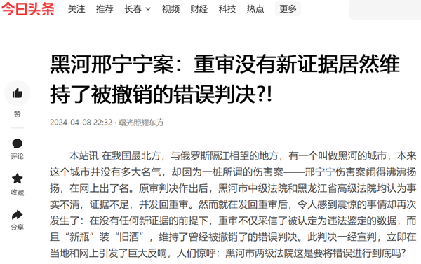 黑河邢宁宁案:重审没有新证据居然维持了被撤销的错误判决?!