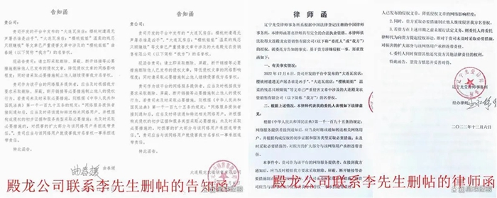 李广军向媒体介绍:2022年12月6日前后,因一位辽宁一家官方媒体老记者所求,他在自己管理的网站上转发了今日头条、腾讯等媒体刊发的关于瓦房店樱桃树大面积死亡事件的报道。第三天,即12月8日,大连殿龙农资销售有限公司(简称:大连殿龙)即与他联系删贴,因稿件所涉证据确凿,而大连殿龙并没有提供有力证据而未能删除,他万万没有想到大连殿龙竟然暗中起诉他名誉侵权!