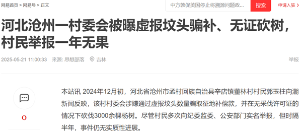 潮新闻曾于2024年12月以《沧州一村委会被曝虚报坟头数量骗取征地补偿款,官方回应称正在调查》为题报道此事,引发多家媒体转载。然而半年过去,事件调查仍无进展,原始报道在网络上也难以检索。村民质疑:“是调查遇阻,还是有人想‘捂盖子’?