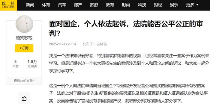 近日,杨先生已经向上级人民法院提起上诉,希望受理案件的法院及审理法官不受“干预”,秉公执法,希望杨先生能够得到公平公正的判决,拿回属于自己的房屋产权。同时我也会继续跟进,把该案例的后续发展继续分享给大家。(鹤翔)